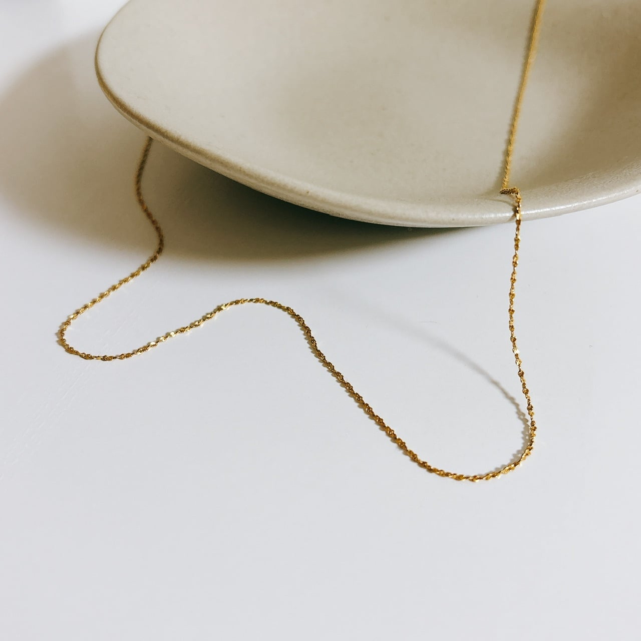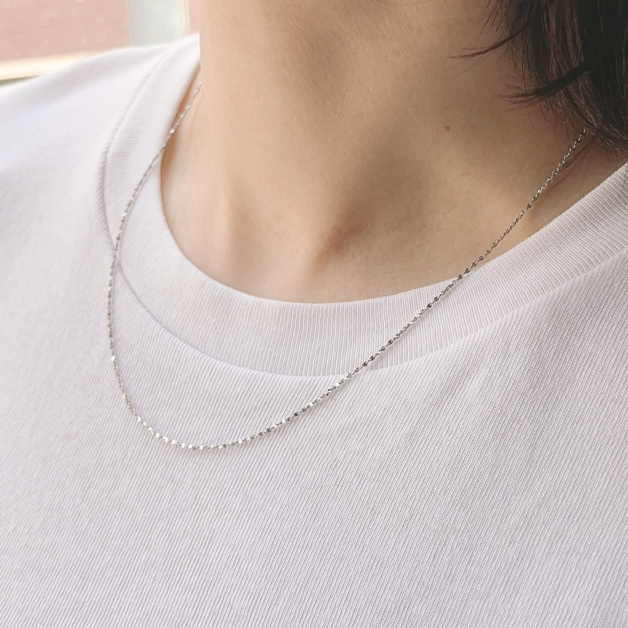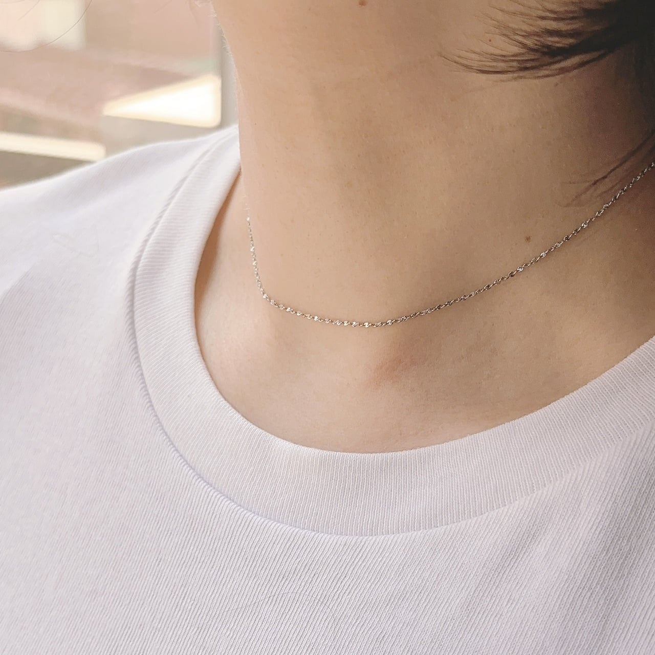 繊細なチェーンなのに、しっかり光を集めてキラキラ輝く。