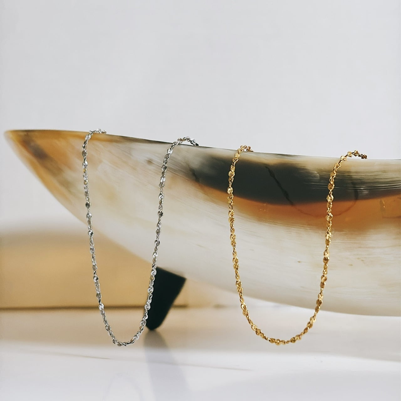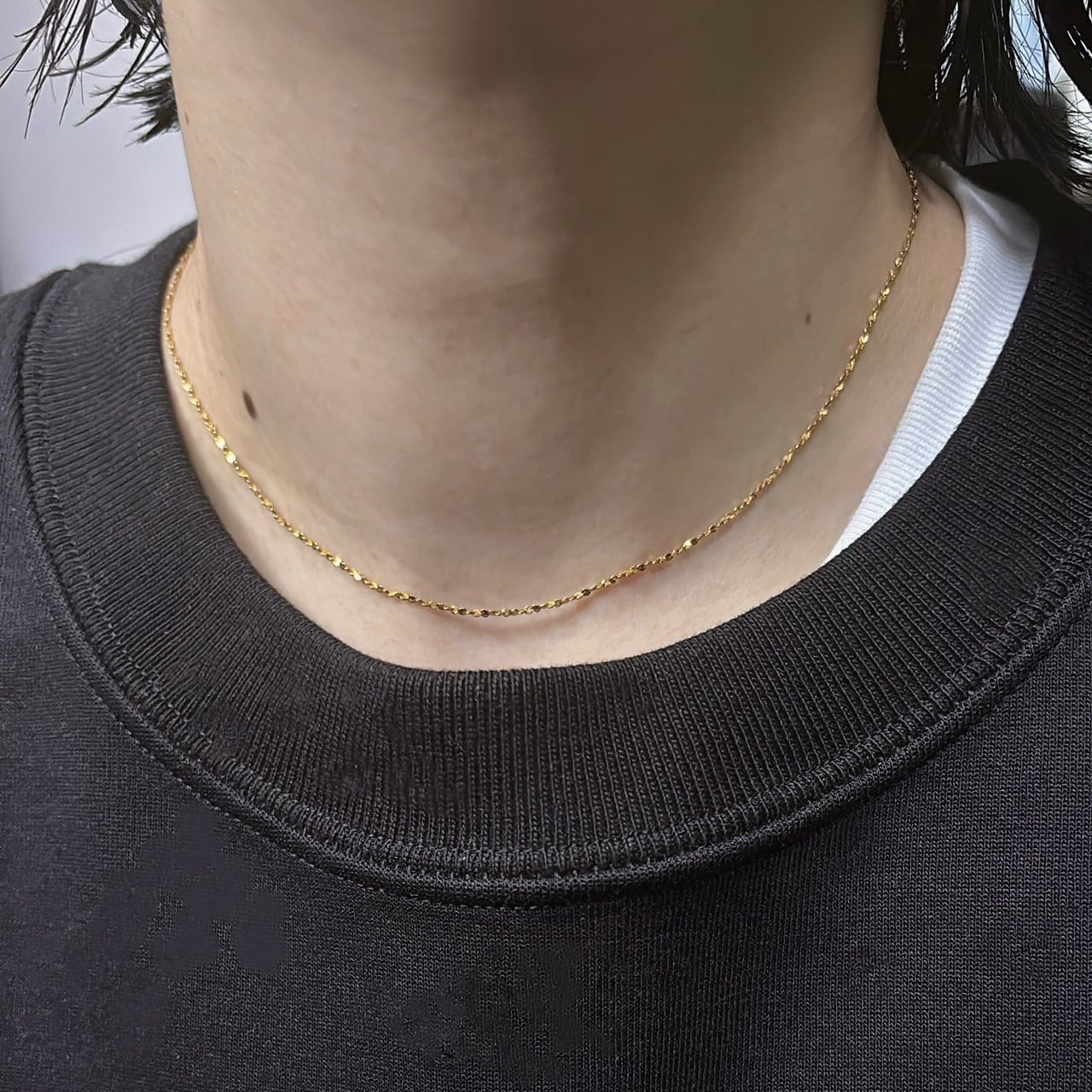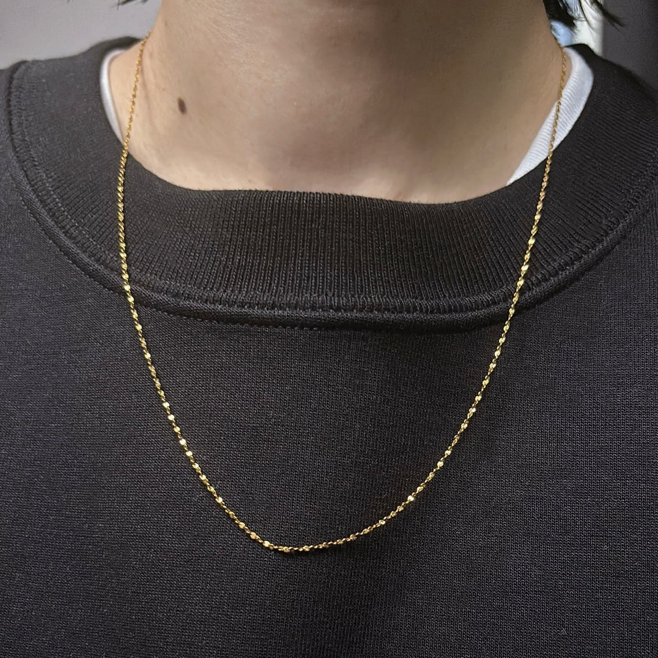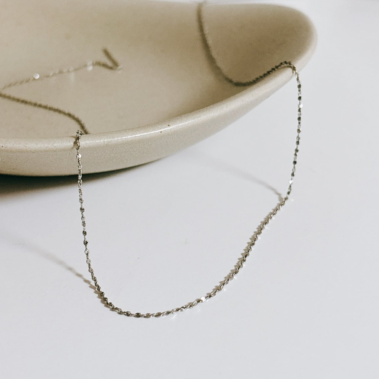 繊細なチェーンなのに、しっかり光を集めてキラキラ輝く。