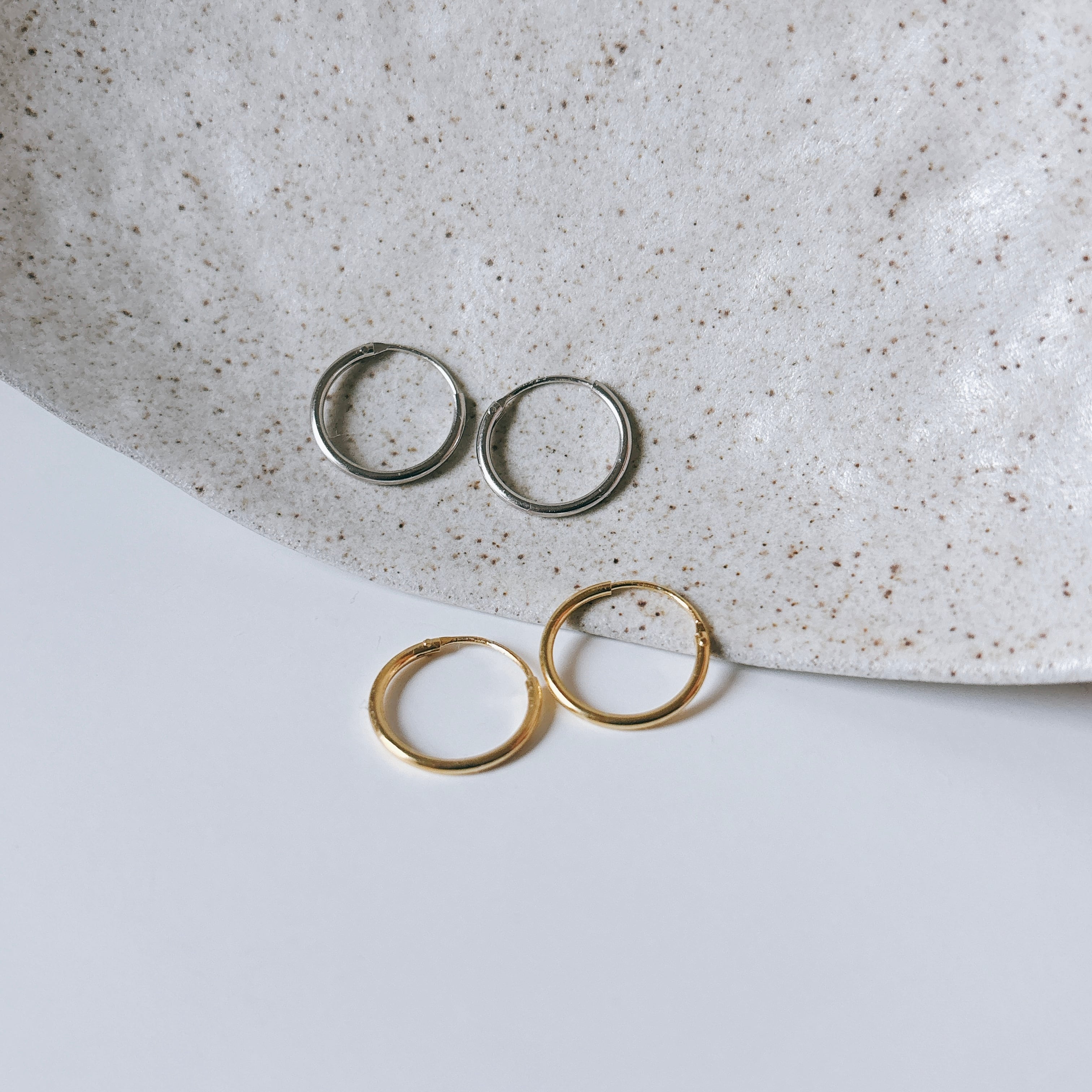 ありそうでなかなか手に入らない、細く上品なフープピアスです。