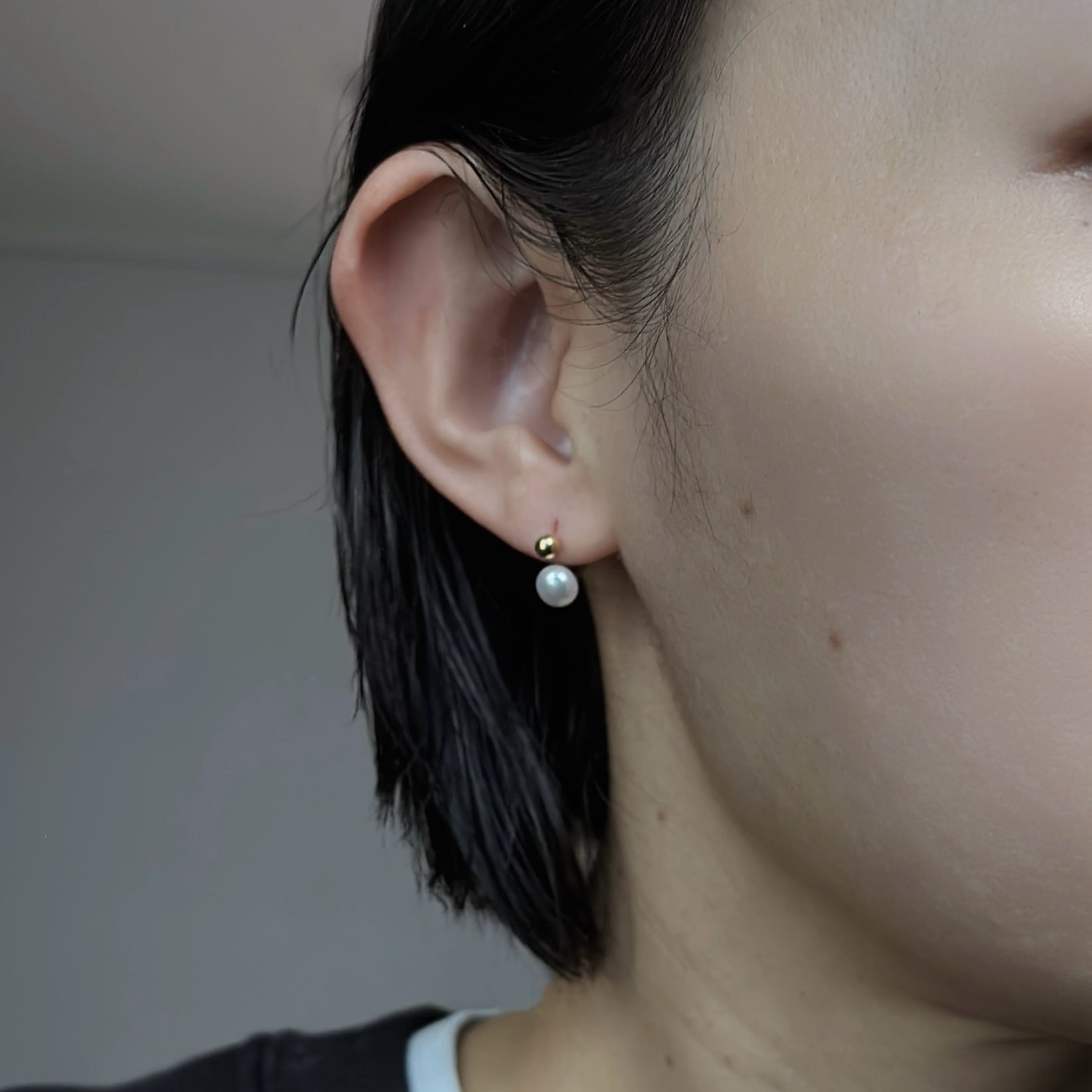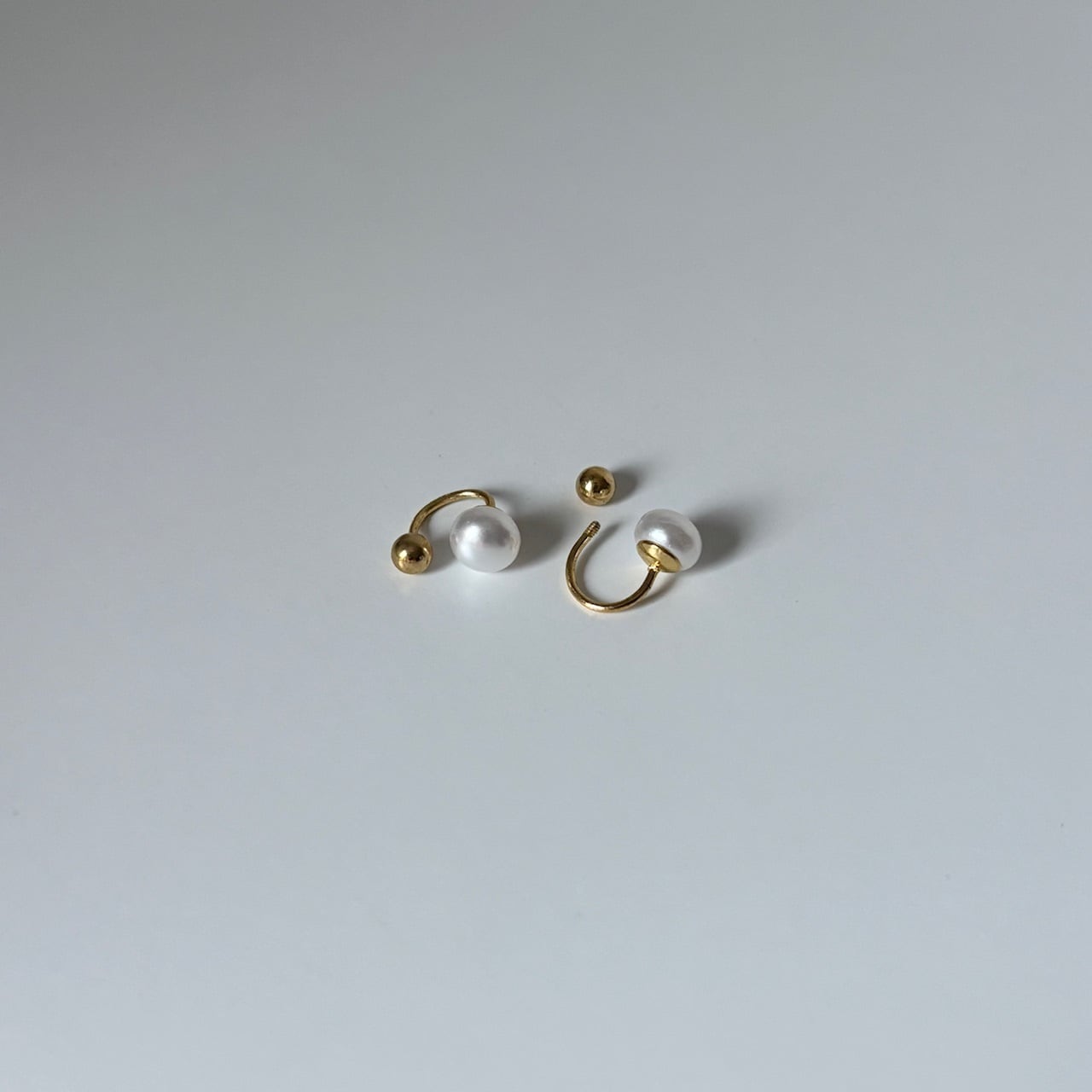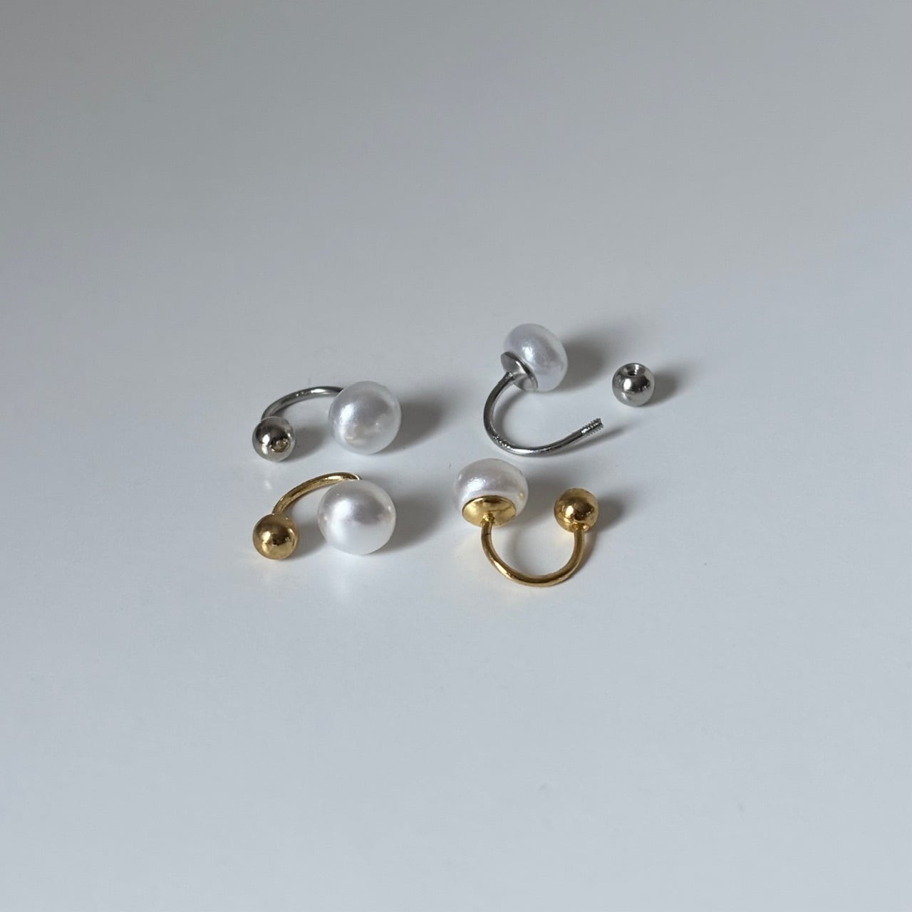 耳の表から通すとパールが上に、後ろから通すとパールが下にあるデザインが楽しめるので、ご自身の耳の形や好みのスタイルに合わせて付け替えていただけます。