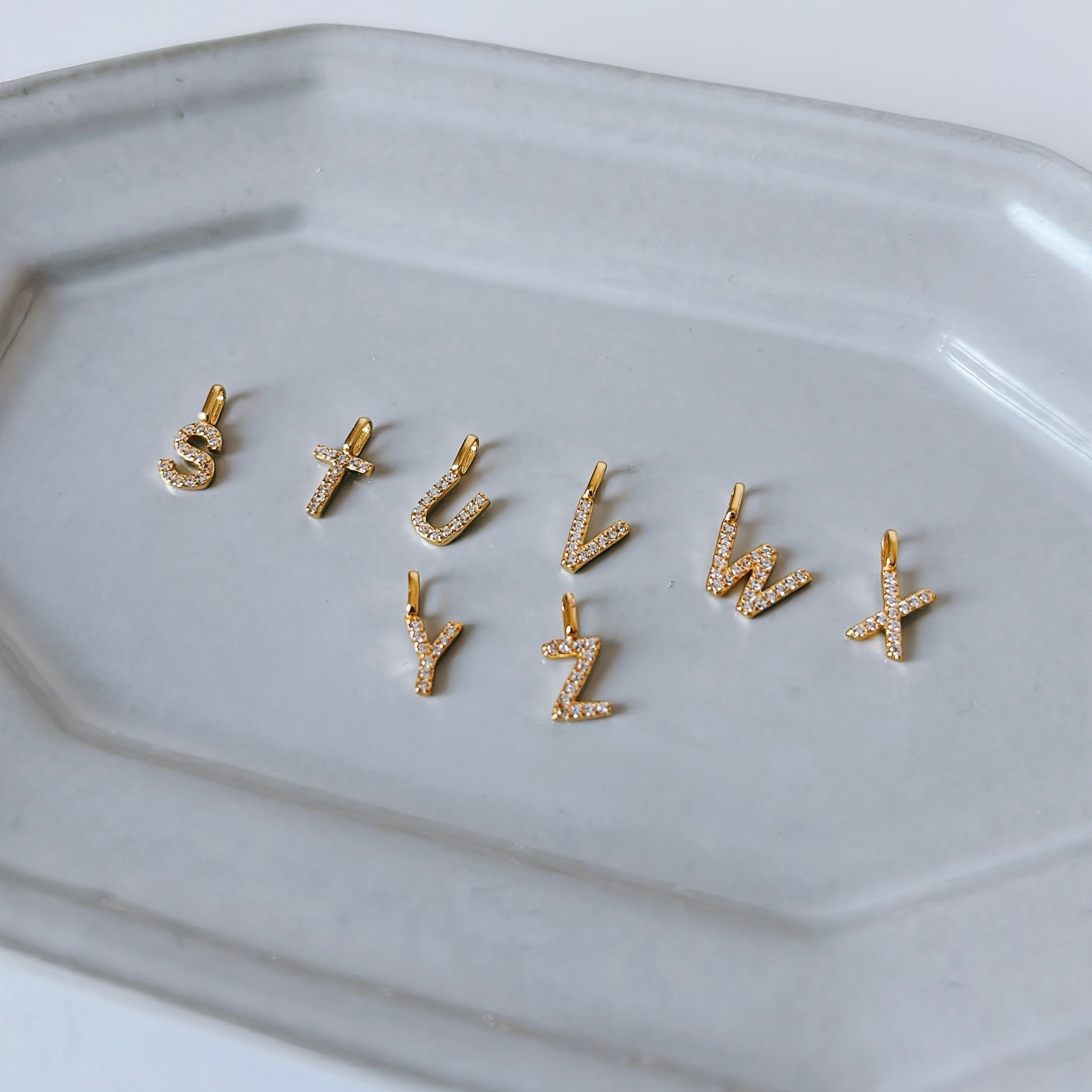 アルファベットに沿って丁寧に配されたジルコンが